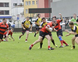 Třetí extraligové utkání sehráli naši muži na půdě letošního vícemistra Sparty Praha. Na utkání jsme dorazili díky pořuše vlaku se 40 minutovým zpožděním a nedostatečná rozcvička měla za následek i špatný start do utkání. Už v 17 minutě jsme prohrávali 0 : 10, a aby toho nebylo málo musel odstoupit pro zranění Vojta Kubatý. Naštěstí naši hráči nesklopili hlavy,ale začali bojovat o každý kousek hřiště. Už ve 20 min. pronikl obranou Sparty Michal Havránek a snížil stav po následné konverzi na 7 : 10 . Do konce poločasu zvyšoval soupeř skóre jen za 2 TK , náš jediný TK proměnil Aleš Kloda a stav po po40 min. byl tedy 10 : 16. Začátek druhého poločasu nám vyšel parádně. Několikrát se nám podařilo obranu Sparty rozebrat , ale body jsme položili až v 53 min. kdy proběhl obranou Patrik Leroch a po konverzi Alše jsme šli poprvé v utkání do vedení 17:16. Když v 60min. proměnil Aleš další TK a zvýšil vedení na 20:16 vypadalo to že už nám vítězství nemůže uniknout. Bohužel opak byl pravdou. Dvěma hrubými chybami jsme umožnili Spartě dvakrát položit a když jejich bezchybný kopáč proměnil další TK byl výsledek najednou 33:20. Ani za tohoto nepříznivého stavu naši hráči zápas nezabalili,ale bojovali až do poslední minuty. Bohužel to stačilo jen na skorigování výsledku.Poslední naší pětku položil Patrik a Aleš upravil konverzí konečný výledek na 27 : 33. Odvážíme si tedy z Prahy jen defenzivní bod, ale taky ponaučení že zápas se hraje až do poslední minuty a každá ztráta koncentrace se nám škaredě vymstí. Děkuji všem hráčům za předvedený výkon. J.